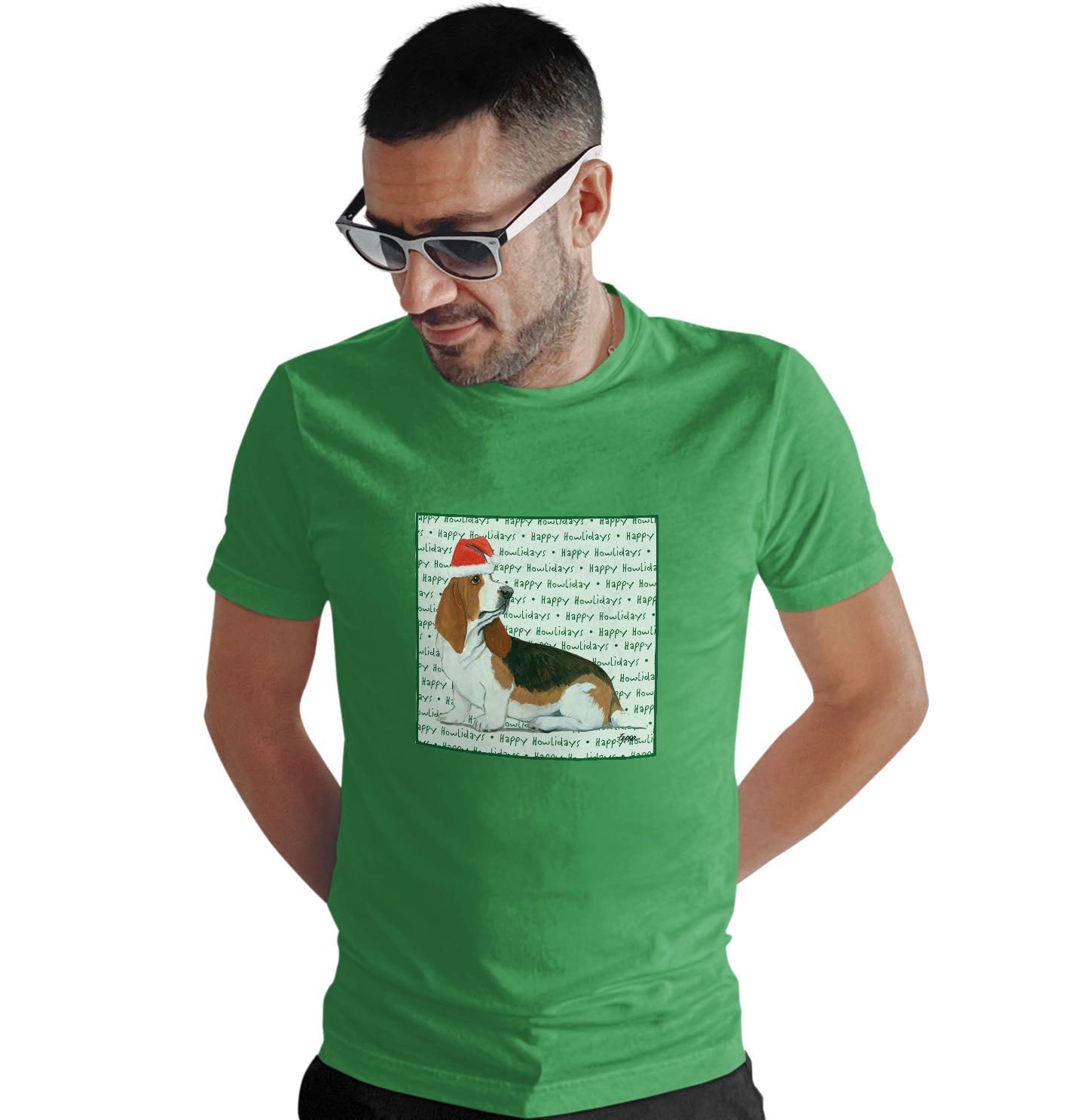Basset Hound Happy Howlidays Text - Adult Unisex T-Shirt