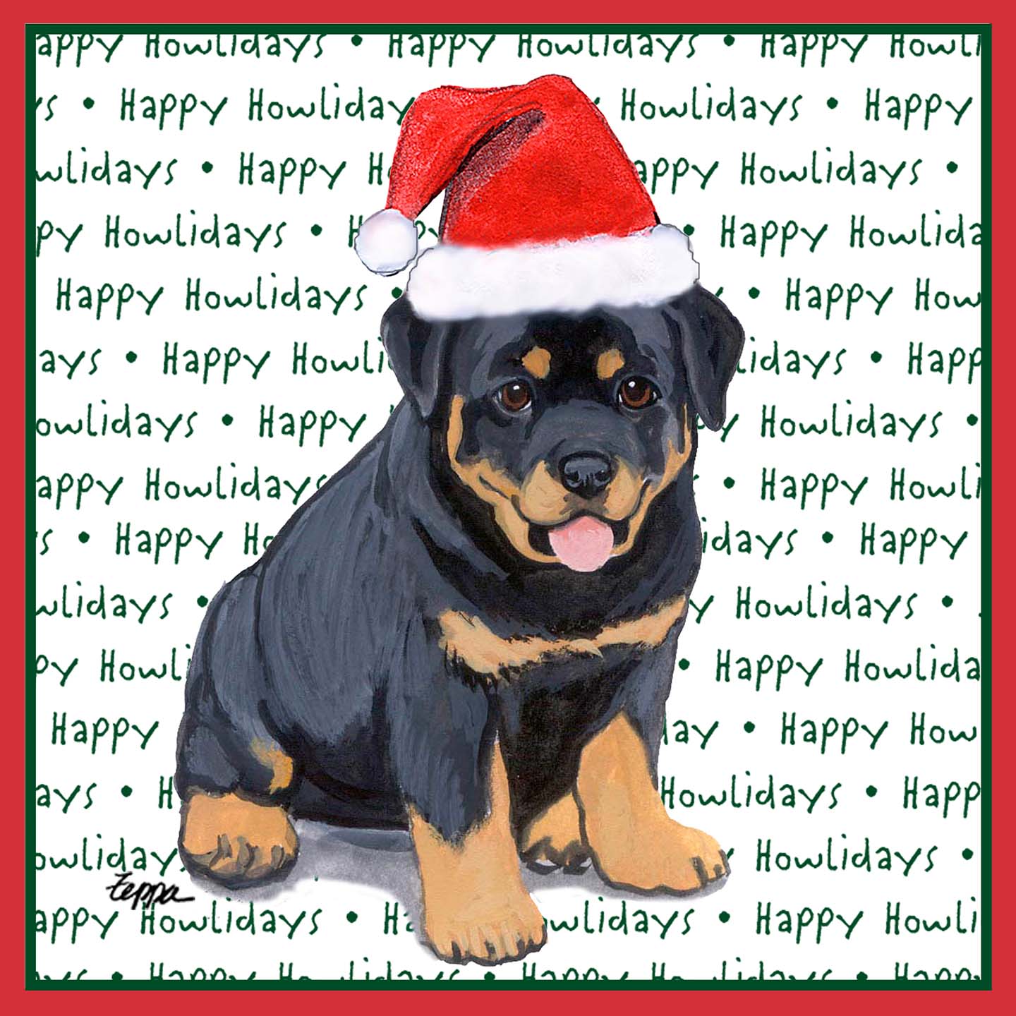 Rottweiler Puppy Happy Howlidays Text - Adult Unisex T-Shirt