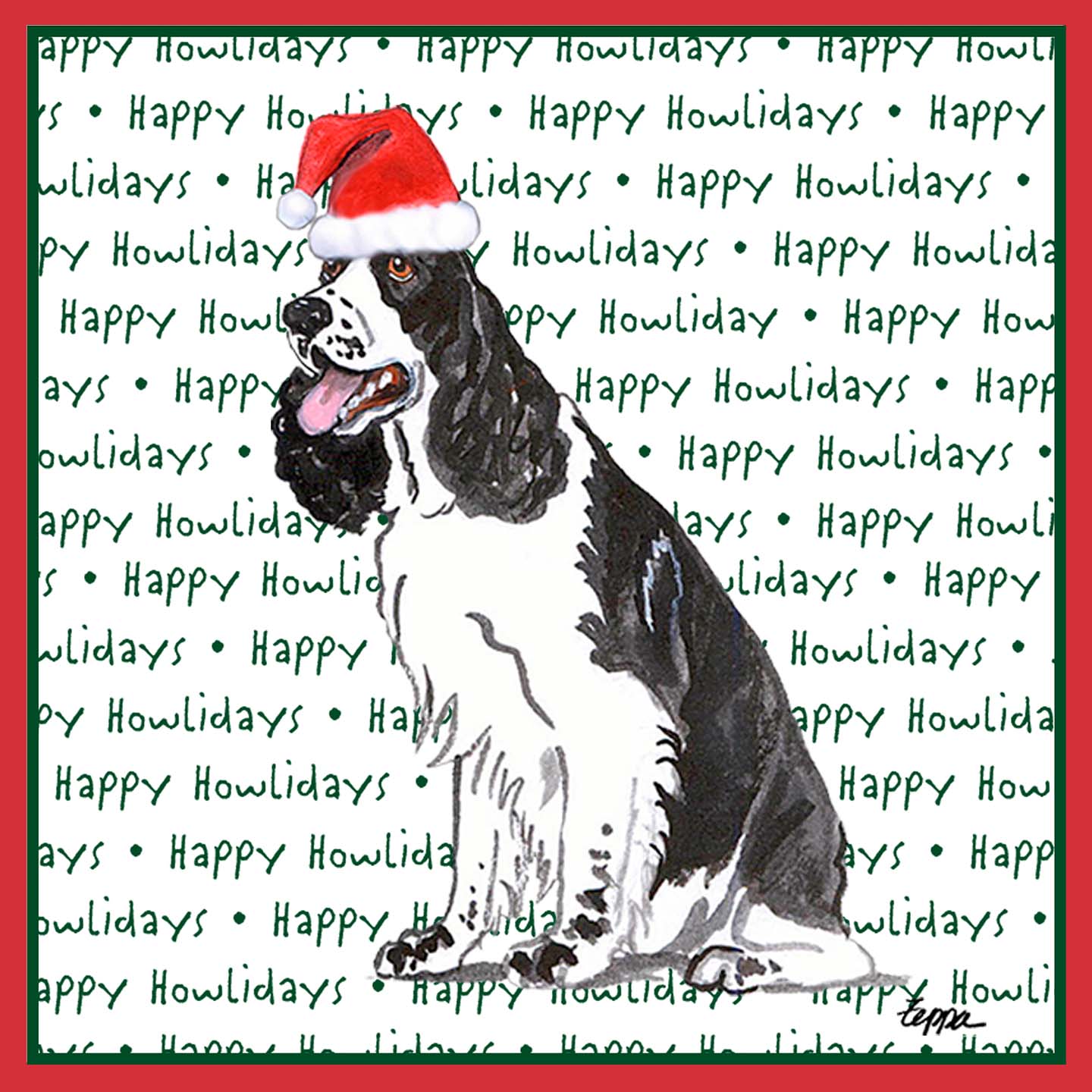 English Springer Spaniel (Black & White) Happy Howlidays Text - Adult Unisex Long Sleeve T-Shirt